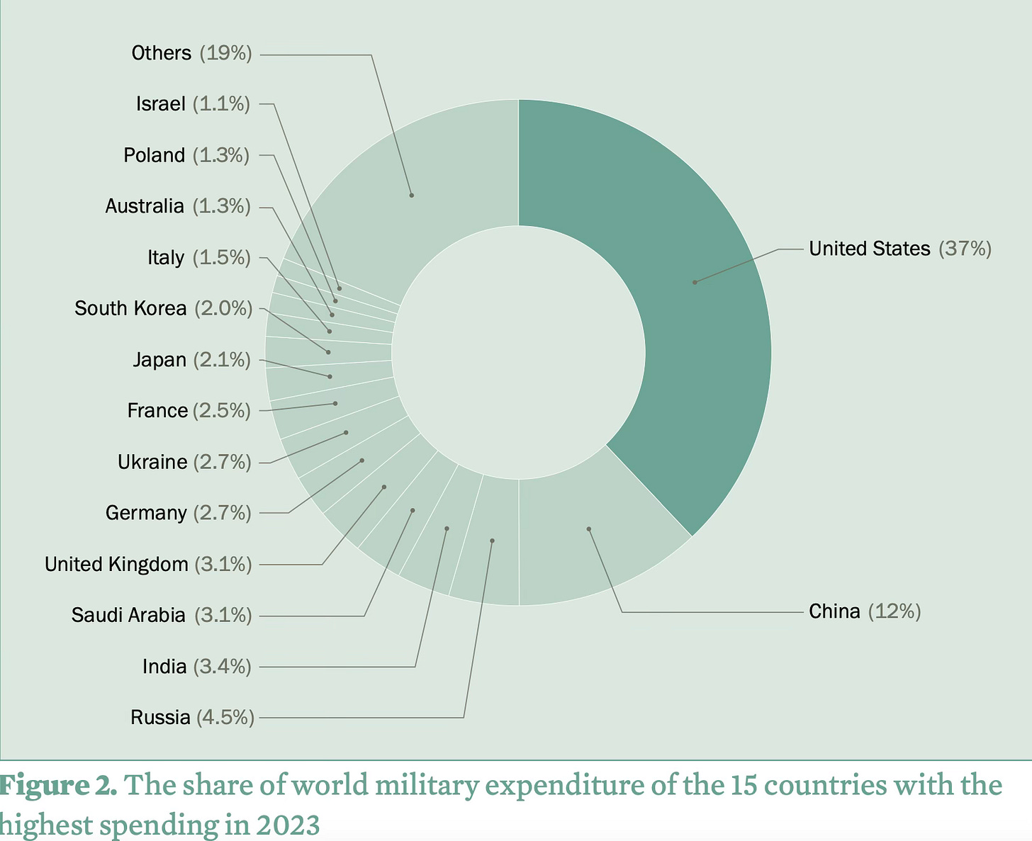 The point is that NATO, not Russia, is the world’s largest military power and hence threat. It accounted for 55% of global defence spending in 2023. NATO spends 5 times more than China and 10 times more than Russia.