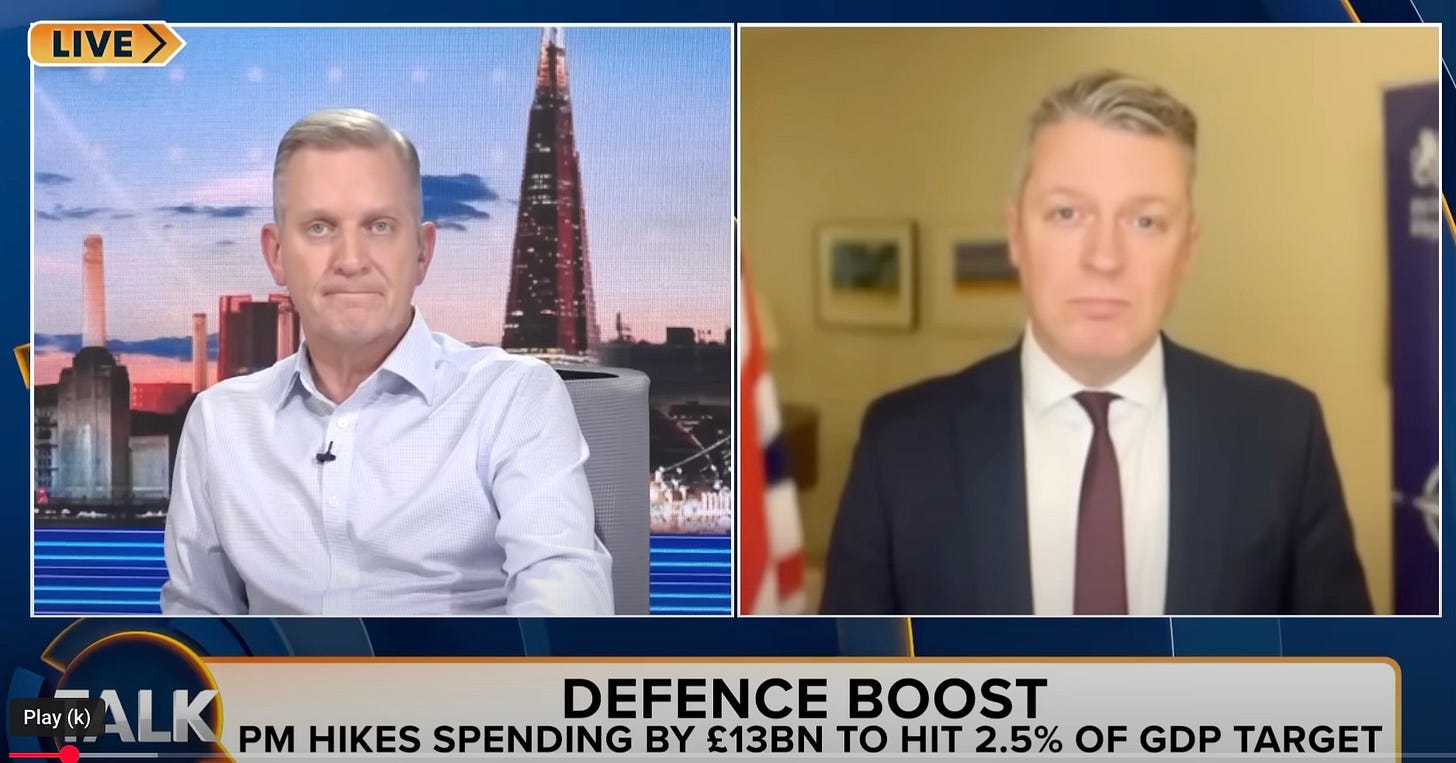 Armed Services Minister Luke Pollard claims Starmer is moving money from ‘soft power’ to ‘hard power,’ and says the extra spending isn’t just about defence but about “creating more jobs and growth.”