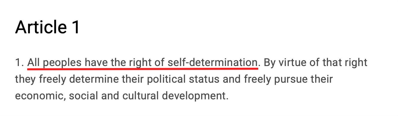 Which brings me back to the principle of self-determination. Committee member Fergus Ewing said he hoped that his colleagues all supported ICCPR’s Article 1:
